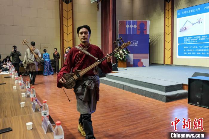 圖為參賽方展示日喀則扎念琴。江飛波 攝