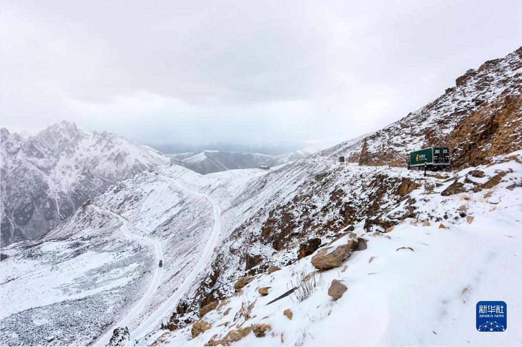 其美多吉與同事駕車行駛在雪線郵路上(資料照片)。其美多吉是中國(guó)郵政甘孜縣分公司郵運(yùn)駕駛組的一名郵車司機(jī),往返在甘孜縣與德格縣之間。這段路程是四川省甘孜州綿延5866公里、平均海拔超過(guò)3500米的雪線郵路最危險(xiǎn)的一段。新華社發(fā)(周兵 攝)