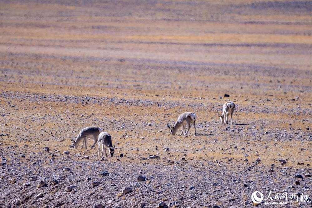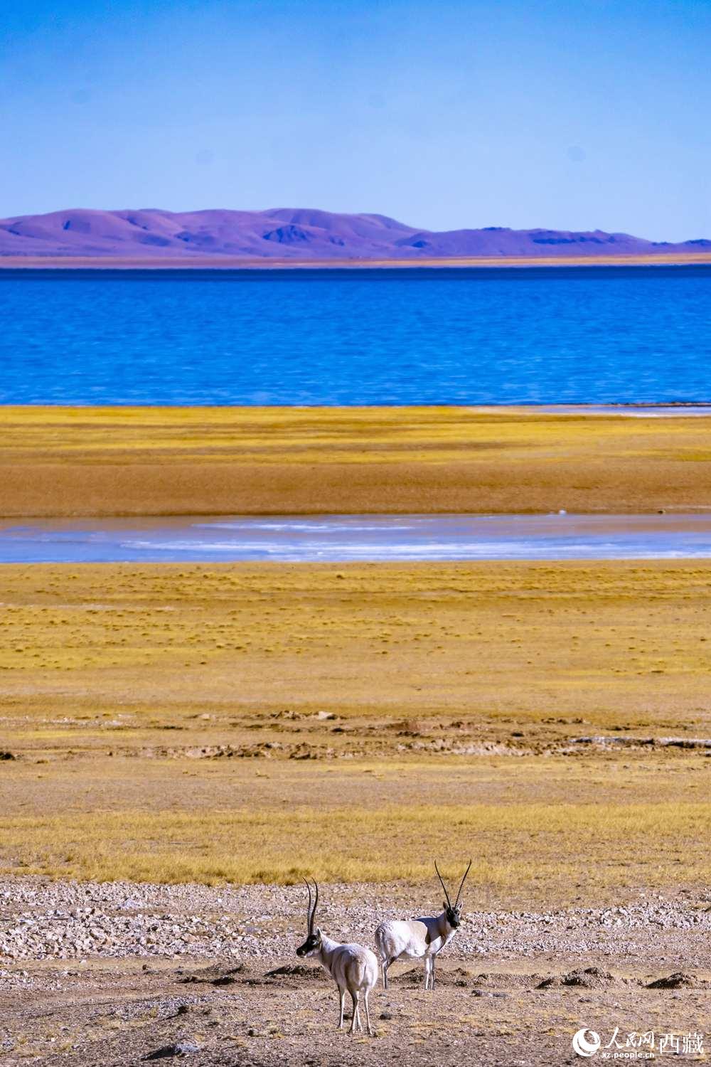 藏羚羊在色林錯湖畔。徐馭堯攝