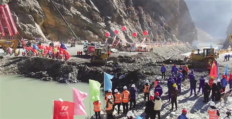 拉哇水電站成功截流現(xiàn)場(chǎng)。