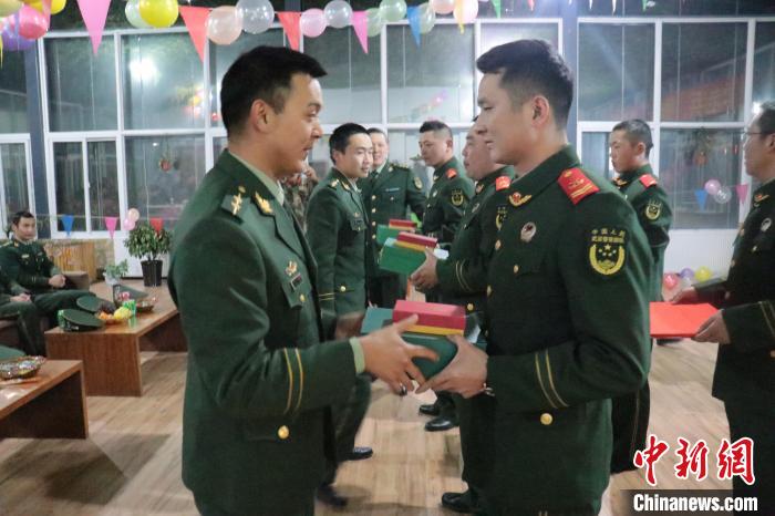 圖為武警第二機(jī)動總隊(duì)某支隊(duì)官兵向老兵贈送紀(jì)念品。李貴華 攝