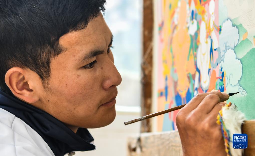 在西藏昌都市卡若區(qū)嘎瑪鄉(xiāng)民族手工藝培訓基地,學員正在學習唐卡繪畫。(2019年10月3日攝)新華社記者晉美多吉 攝