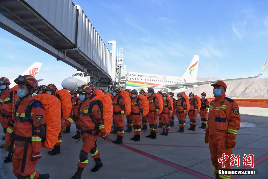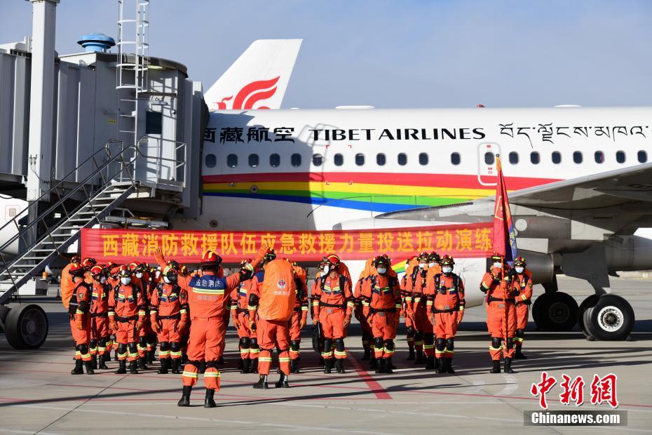1月20日,西藏自治區(qū)消防總隊(duì)在拉薩貢嘎國(guó)際機(jī)場(chǎng)開展2022年跨區(qū)域地震災(zāi)害應(yīng)急救援力量投送拉動(dòng)演練。據(jù)悉,演練投送的裝備主要為個(gè)人72小時(shí)保障物資、通信器材和輕便型的相關(guān)救援器材。 中新社記者 貢嘎來松 攝