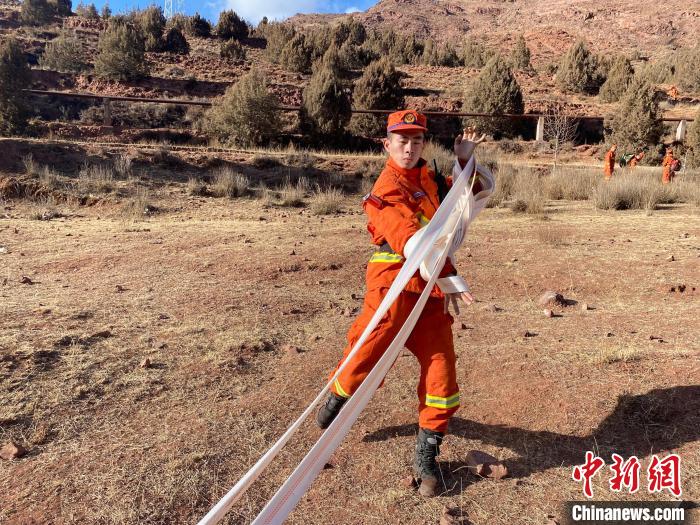 圖為消防指戰(zhàn)員撤收管帶。江達(dá)縣森林消防中隊貢覺駐防分隊 供圖
