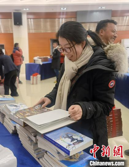 圖為《格薩爾》藏譯漢叢書首發(fā)儀式上讀者現(xiàn)場翻閱圖書?!≮w延 攝