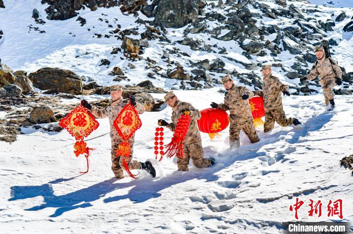 近日,西藏軍區(qū)標(biāo)沙拉錯哨點官兵們喜迎遠道而來的年貨,有牛肉、羊肉、各種蔬菜水果等,送菜的隊伍還給他們帶來了紅燈籠、中國結(jié)、福字等,萬象更新的新年,哨所官兵們堅守在這里,守護萬家燈火。