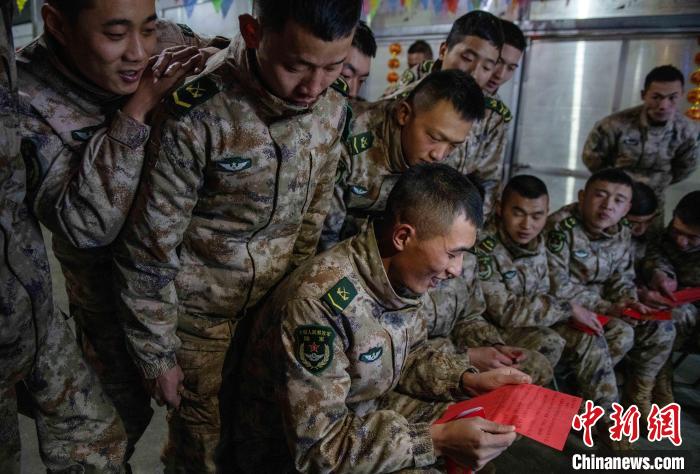 聯(lián)歡的尾聲指導(dǎo)員夏邦國拿著最后的彩袋走到臺前,把晚會推向高潮,“兄弟們,這還有一大袋紅包,里面裝著的可是最珍貴的祝?!?。官兵們用抽盲盒的形式拆開新年的“紅包”。中士趙路寬抽到一個最鼓的,打開是滿滿的糖果;下士吳兵拆開的是一個帶有小機(jī)關(guān)的新年賀卡;下士鄧云川拆到一封遠(yuǎn)方的匿名信,“雖不曾相見與相識,但知道是你們在默默堅守付出,守衛(wèi)著祖國的雪域邊防”。伴隨著他磕絆的普通話,連隊官兵漸漸安靜下來。“邊關(guān)有我,請祖國和人民放心”,簡易投影的大屏上開始播放著官兵們一年多來頂風(fēng)冒雪,戰(zhàn)天斗地的光影片段,在這大山里的多少的苦累酸甜,都已經(jīng)鐫刻在茫茫雪域。