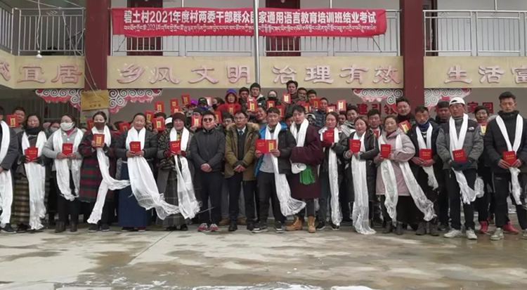 打造“領頭雁”,輻射帶動群眾共同進步?!皻q歲鬧元宵,轟天鑼鼓敲”,進一步讓“學習”之風在基層助力“好學”之苗生根發(fā)芽,工作隊在元宵節(jié)開展“2021年度國家通用語言教育培訓結(jié)業(yè)典禮”,從全村116名參訓人員中評選出“學習之星”1名,“進步之星”2名進行表揚表彰,樹立學習榜樣,激勵對標對表,努力學習國家通用語言文字,有利于促進各民族交往交流交融。