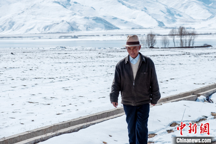 2月23日,在旦增所在的拉薩市林周縣卡東村附近的虎頭山水庫(kù),中新社記者看到,上百只黑頸鶴在雪地里休閑覓食,田間也傳來聲聲鶴鳴。