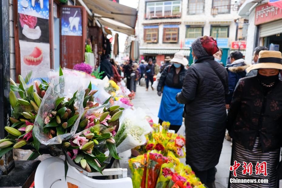 拉薩小昭寺附近采購年貨的民眾絡(luò)繹不絕。江飛波 攝
