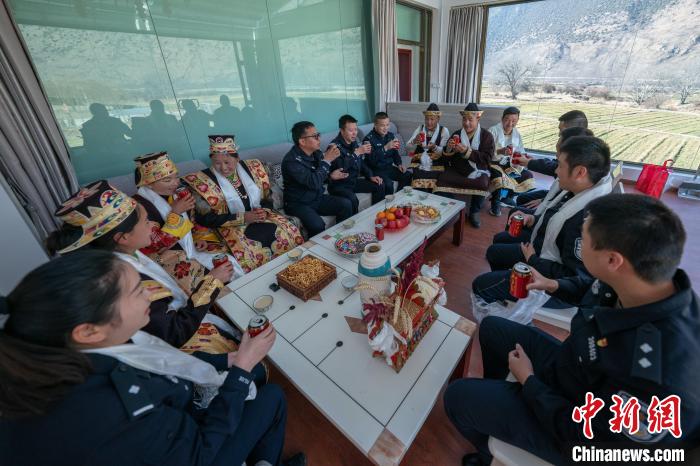 圖為轄區(qū)民眾在林芝市米林縣派邊境派出所內(nèi)和民警一起過新年。江才云旦 攝