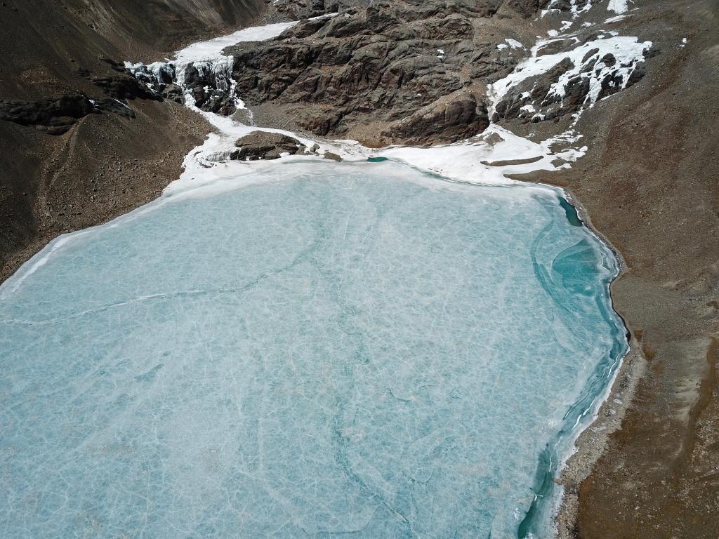 2022年3月27日拍攝的窮母崗日峰腳下的冰湖。(手機照片,新華社記者 沈虹冰 攝)