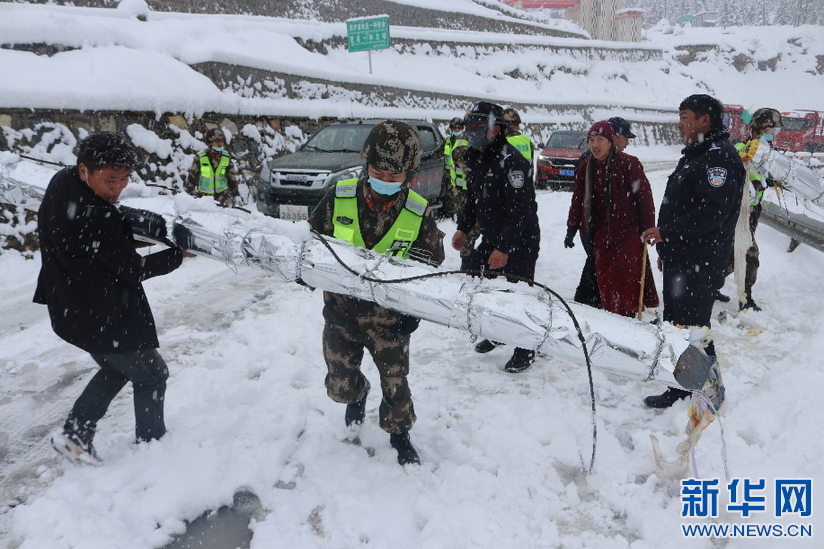 武警第二機(jī)動(dòng)總隊(duì)某支隊(duì)官兵正在清理雪崩積雪(4月4日攝)。新華社發(fā)(何欽攝)