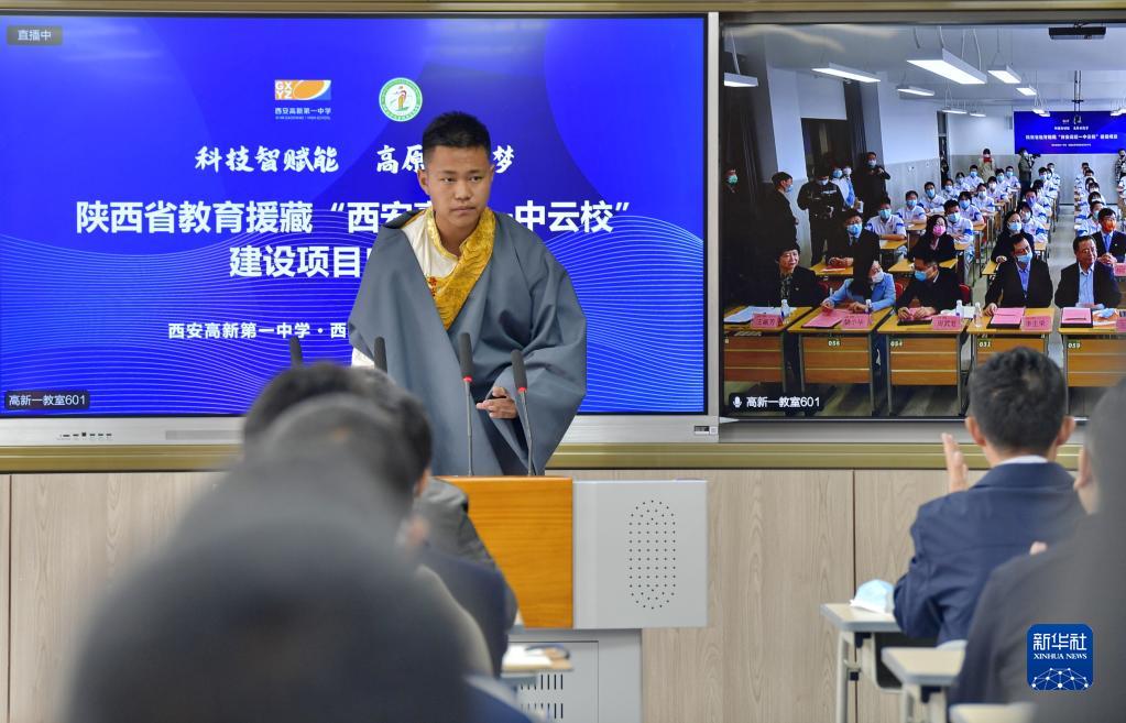 當(dāng)日,陜西省教育援藏“云?!苯ㄔO(shè)項目正式啟動。陜西省西安高新第一中學(xué)和西藏拉薩阿里地區(qū)高級中學(xué)結(jié)成“對子”,借助5G網(wǎng)絡(luò)開展教學(xué)教研互動,助力提升教育水平。