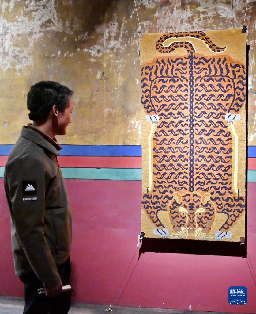 當日,名為“智慧和無畏”的“虎毯”展覽在拉薩吉本崗藝術(shù)中心展出。西藏的非遺工作者根據(jù)古代藏毯藏品重新挖掘,整理了以“虎”為主題的圖案,設(shè)計制作了本次展覽作品。本次展覽展出20余件各具特色的藏毯藝術(shù)作品,展覽將持續(xù)到5月初。