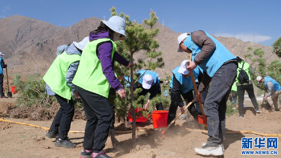 圖為植樹活動(dòng)現(xiàn)場(chǎng)(4月16日攝)。新華網(wǎng)發(fā) 貢桑央吉(實(shí)習(xí)生)攝