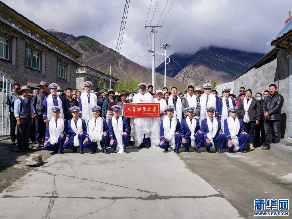 西藏林芝市朗縣洞嘎鎮(zhèn)聶村村民夾道歡迎榮立三等功的消防員洛桑頓珠(4月15日攝)。(李國(guó)燾攝 新華網(wǎng)發(fā))