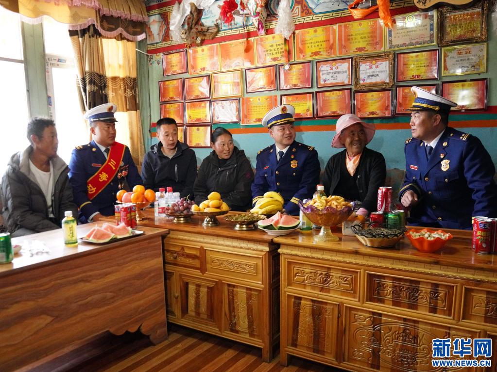 西藏林芝市森林消防支隊(duì)代表與洛桑頓珠家屬交流談心(4月15日攝)。(李國(guó)燾攝 新華網(wǎng)發(fā))