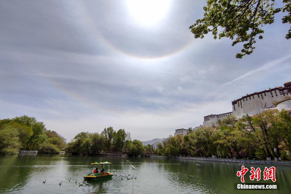 4月20日,西藏拉薩天空中出現(xiàn)日暈。中新社記者 江飛波 攝