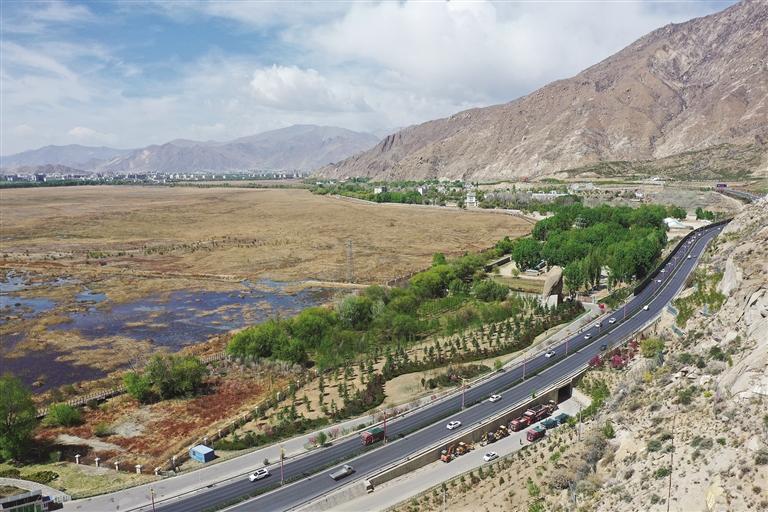 這個季節(jié),行駛在拉薩環(huán)城路,一路花香鳥語,風景獨好。北環(huán)線上的拉魯濕地、北山公園、西藏美術博物館;南環(huán)線上的南山公園、文成公主實景劇場、西藏非物質文化遺產博物館、網(wǎng)紅橋;以及西環(huán)線附近的香雄美朵生態(tài)旅游文化產業(yè)園、民族團結主題公園;還有跨越拉薩河的吉曲大橋……瞬間勾勒出一幅五彩斑斕的畫卷。