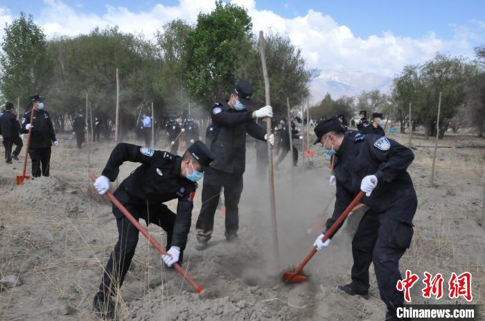 圖為西藏邊檢總站輪訓(xùn)大隊(duì)民警植樹活動(dòng)現(xiàn)場 。西藏邊檢總站輪訓(xùn)大隊(duì)供圖