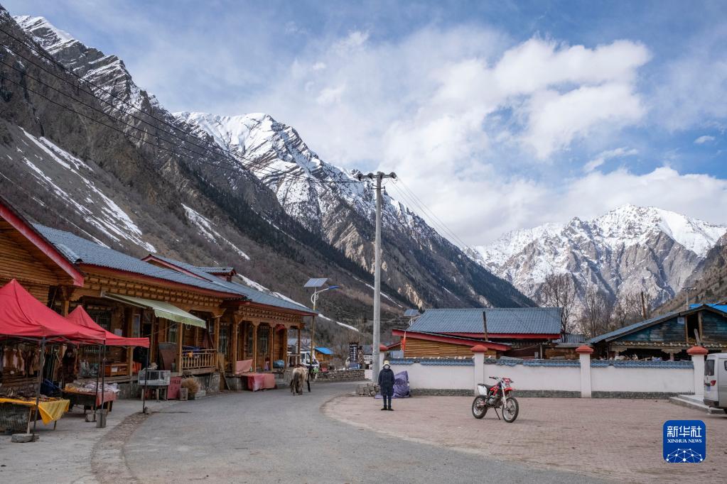 這是米堆冰川腳下的林芝市波密縣米堆村(4月23日攝)。新華社記者 孫非 攝