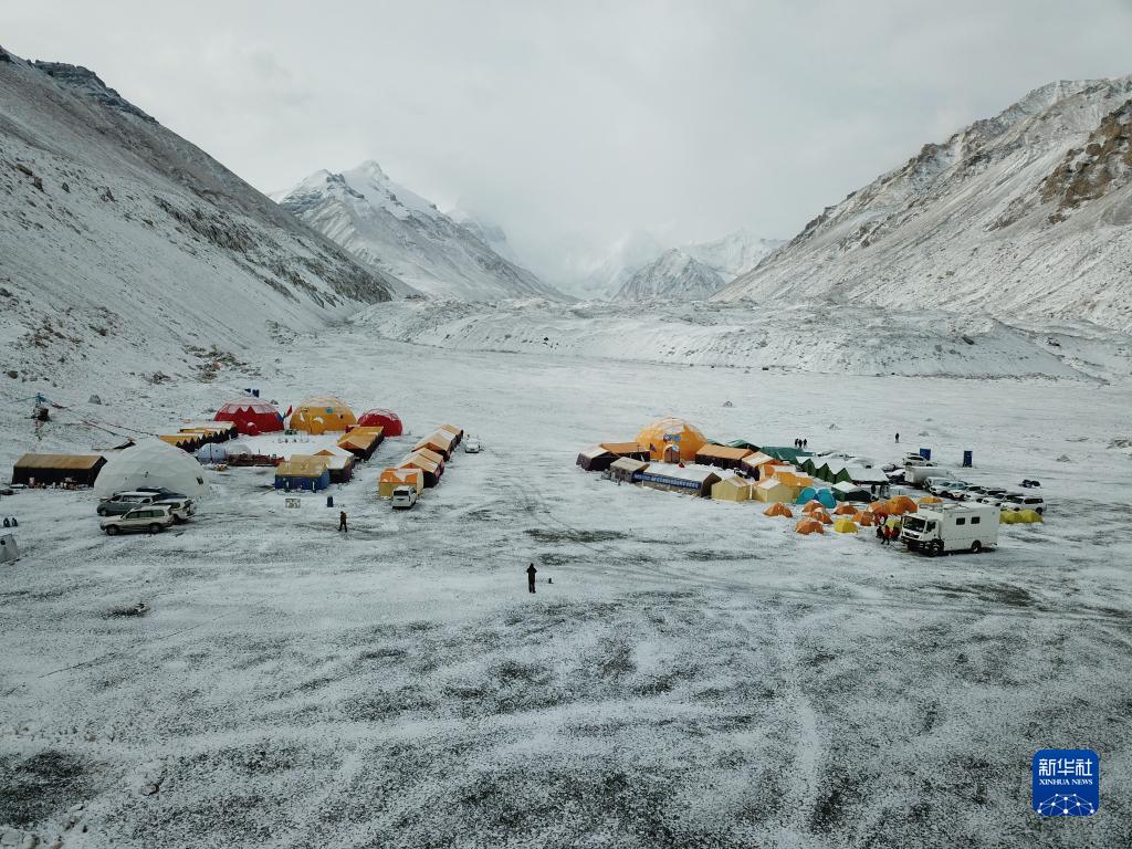 珠峰登山大本營(4月30日攝,無人機照片)。新華社記者 姜帆 攝