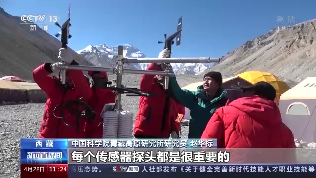 此次珠峰科考的一個重要任務(wù),是從海拔5200米到8800米搭建8個氣象站,其中4個在海拔7000米以上,它們的海拔分別在7028米、7790米、8300米和8800米。