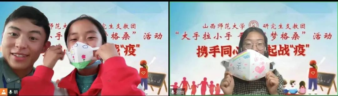 連線中,孩子們主動關(guān)心我校志愿者的在校情況,孩子們充滿關(guān)切的眼神讓志愿者們紛紛動容。志愿者們也向孩子們詳細(xì)的介紹了防疫自護知識,結(jié)合視頻、圖片等形式生動講述了團結(jié)一心、眾志成城的抗疫故事,向所有抗疫英雄們致敬,同時引導(dǎo)孩子們要深刻認(rèn)識到作為一名中國人的幸福,勉勵孩子們永遠(yuǎn)要團結(jié)在一起,共克時艱,遠(yuǎn)在西藏也要做好防護,一字一句中滿是擔(dān)心和牽掛。隨后,孩子們拿出早已準(zhǔn)備好的工具與志愿者們一同制作了口罩,口罩上寫滿了對哥哥姐姐的關(guān)心、祝福,天真可愛的臉龐上寫滿了戰(zhàn)勝疫情的決心。連線最后,孩子們將精心準(zhǔn)備的才藝表演給志愿者們,是鏗鏘有力的《少年中國說》,是活潑動人的《給你一個擁抱》,是真誠溫暖的《聽我說謝謝你》,或許是那不太流暢的表達(dá)、不太連貫的動作,讓遠(yuǎn)隔3700公里的傳遞更加有了溫度,讓兩顆互相牽掛的心靠的更近。