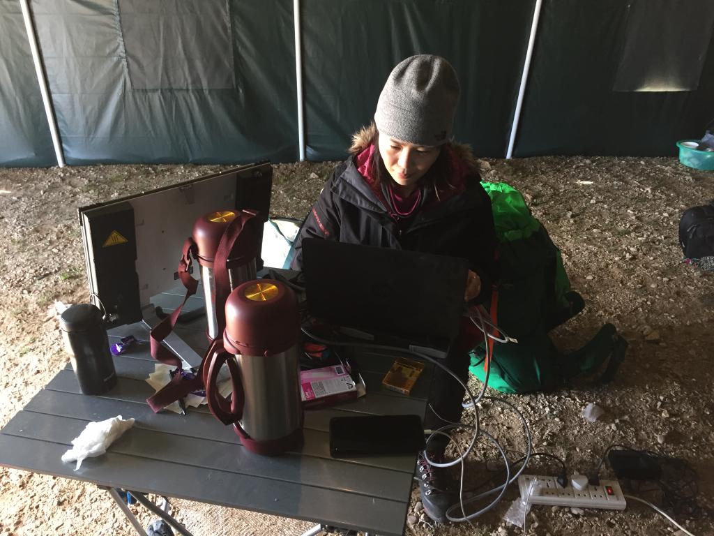 2017年6月,記者在青藏科考色林錯(cuò)營(yíng)地帳篷里寫(xiě)稿。