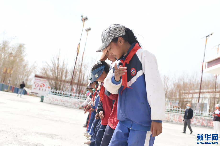 多油村中心小學的學生在表演傳統(tǒng)非遺舞蹈(4月21日攝)。新華網(wǎng) 旦增努布攝