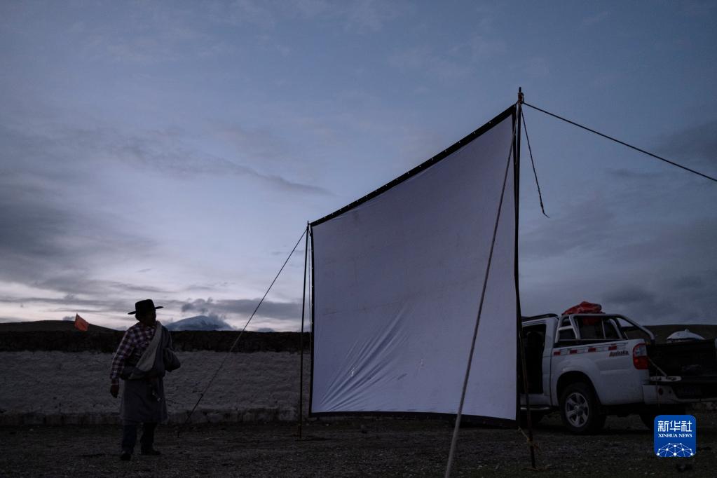 在西藏當(dāng)雄縣巴靈村,羅珠在檢查搭建好的幕布(5月20日攝)。新華社記者 孫非 攝