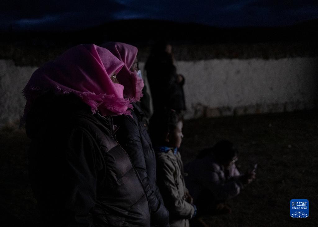 西藏當(dāng)雄縣巴靈村的村民在看電影(5月20日攝)。新華社記者 孫非 攝