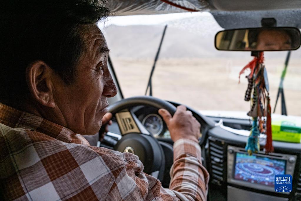 羅珠在開(kāi)車前往鄰近的巴靈村(5月20日攝)。新華社記者 孫非 攝