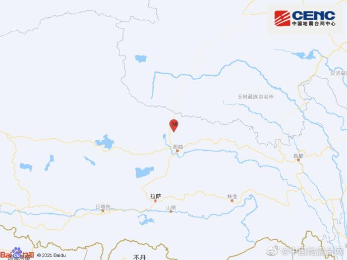 中國地震臺網(wǎng)正式測定:5月26日15時48分在西藏那曲市安多縣(北緯32.25度,東經(jīng)91.89度)發(fā)生4.8級地震,震源深度10千米。