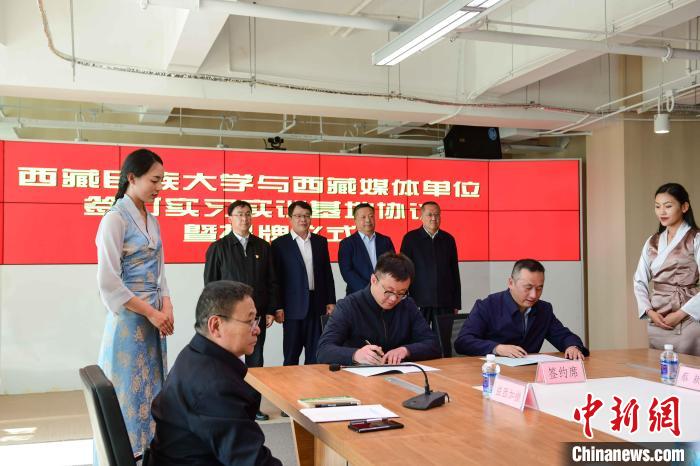 5月27日,西藏民族大學(xué)與西藏日報(bào)社、西藏廣播電視臺(tái)、人民網(wǎng)西藏頻道、中國新聞社西藏分社、中國西藏網(wǎng)西藏記者站等媒體單位簽訂實(shí)習(xí)實(shí)訓(xùn)基地協(xié)議暨揭牌儀式在西藏日報(bào)舉行。