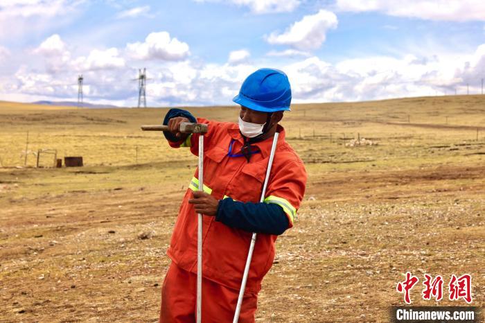 “這里是當(dāng)年建設(shè)青藏聯(lián)網(wǎng)工程時(shí)的凍土施工攻堅(jiān)帶,這樣的地方,也只有靠冬季受凍時(shí)施工。春夏時(shí)節(jié),便成了泥沼地。”1501號(hào)塔位年檢工作現(xiàn)場(chǎng)負(fù)責(zé)人董建明一邊推車(chē),一邊介紹。