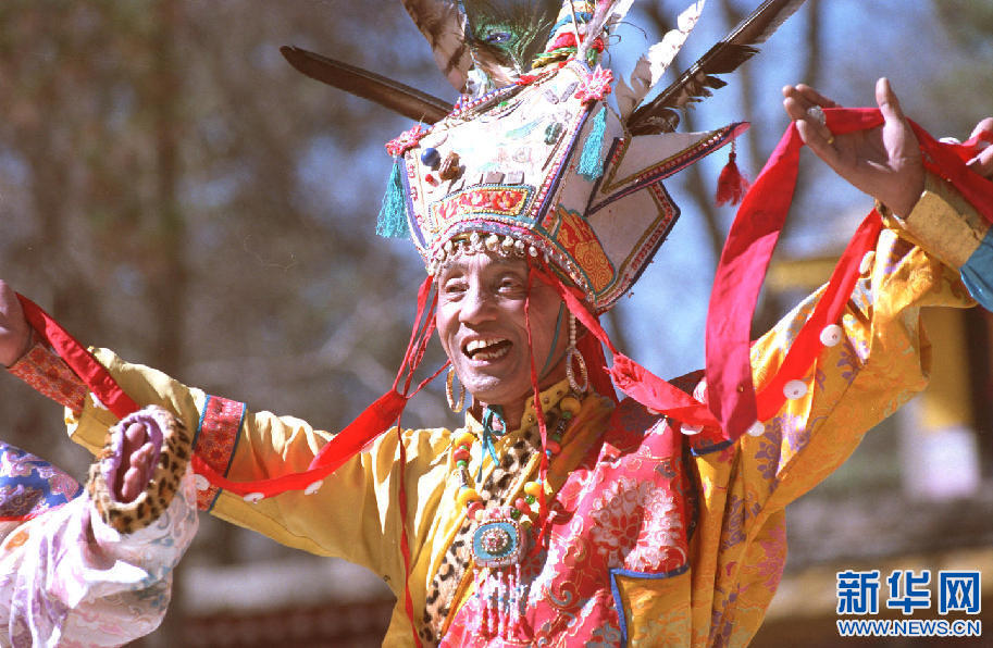 藏族藝術(shù)家土登說唱《格薩爾》史詩。新華社記者 覺果 攝(1997年11月28日發(fā))