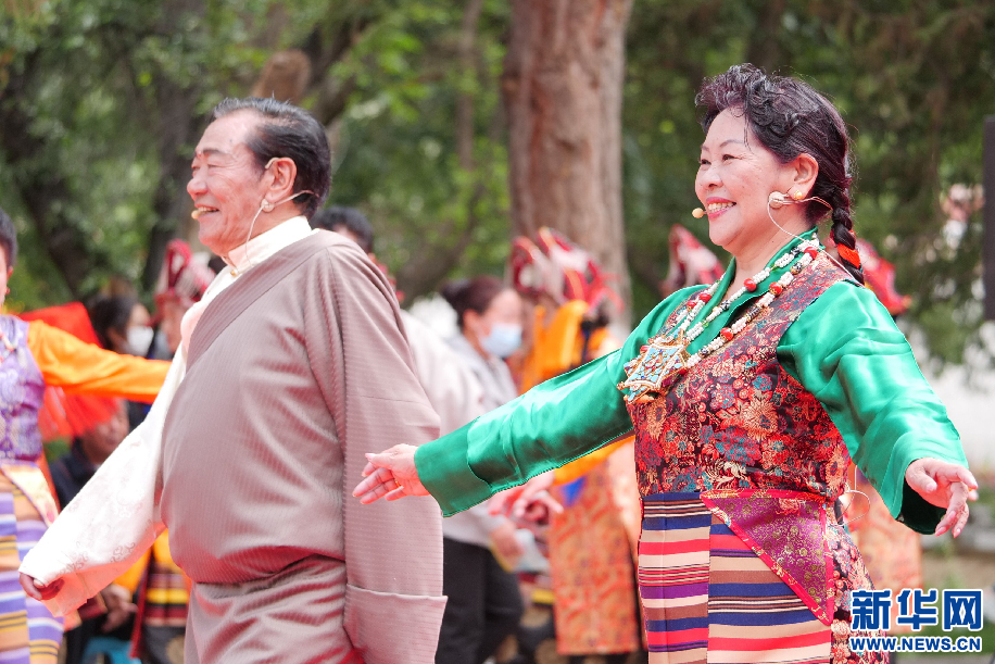 6月11日,西藏日喀則市仁布縣藝術(shù)團(tuán)在世界文化遺產(chǎn)羅布林卡表演藏戲《吉祥歡歌》。新華網(wǎng) 旦增努布攝