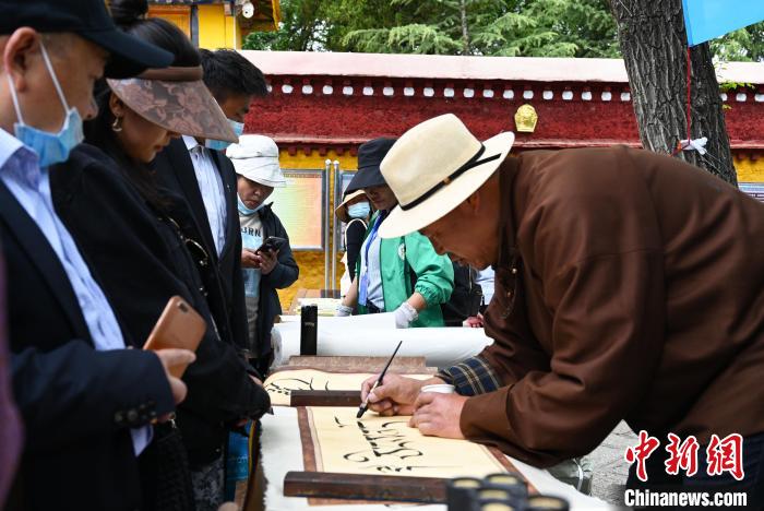 圖為活動現(xiàn)場,藏文書法展示。 趙朗 攝