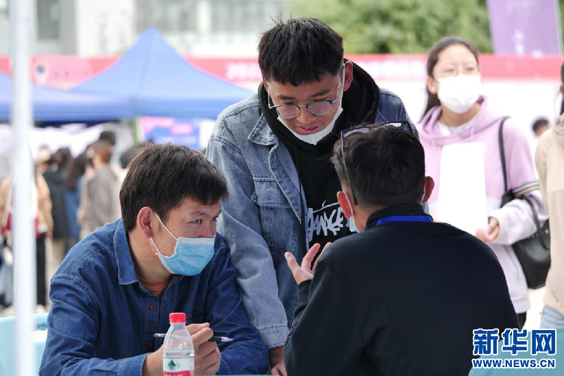 6月15日,應(yīng)屆畢業(yè)生在招聘會現(xiàn)場。新華網(wǎng) 旦增努布攝