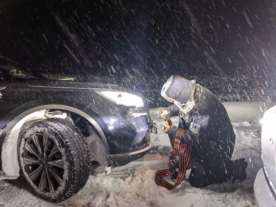 圖為王微和單位民警救援被困車輛。