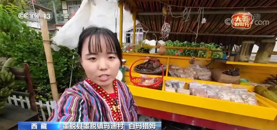 墨脫縣墨脫鎮(zhèn)瑪?shù)洗?白瑪措姆:我是墨脫縣瑪?shù)洗宓陌赚敶肽贰_@是我們家的水果銷售車。這是我們的大檸檬,它現(xiàn)在看起來已經(jīng)非常大,但在8月份會更大一些;這是我們的黃瓜;這是我們的香蕉,據(jù)當?shù)厝苏f,它有一定的止瀉作用?,?shù)洗搴0沃挥?60米,冬無嚴寒、夏無酷暑,一年四季如春,特別適宜水果生長。這些年,我們村里投入了30多萬元,帶領(lǐng)鄉(xiāng)親們建設(shè)了近200畝的香蕉園,我們靠著這些特色水果,每家每戶每年的收入增加了1萬多塊錢?,F(xiàn)在,瑪?shù)洗宓墓瞎阶咴竭h了,村民們的生活越來越甜美。