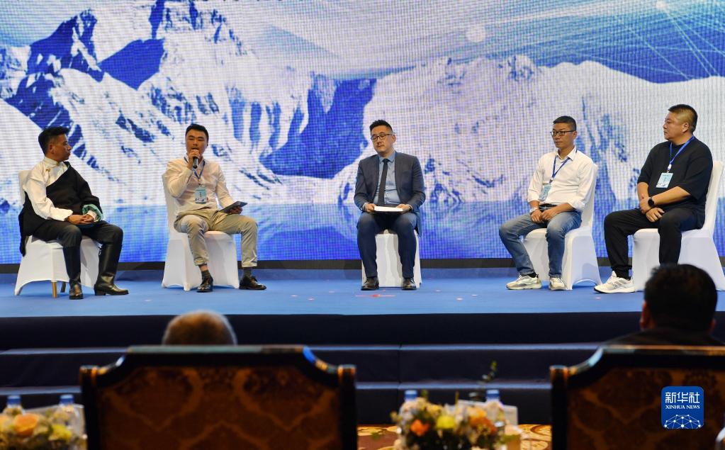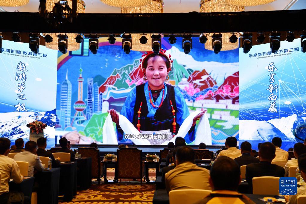 在2022年西藏日喀則旅游推介會(huì)暨數(shù)字旅游創(chuàng)新發(fā)展論壇上,國(guó)內(nèi)業(yè)界人士就數(shù)字文旅和日喀則旅游數(shù)字化發(fā)展前景進(jìn)行主題演講和對(duì)話(7月15日攝)。新華社記者 張汝鋒 攝