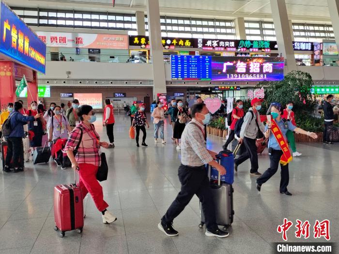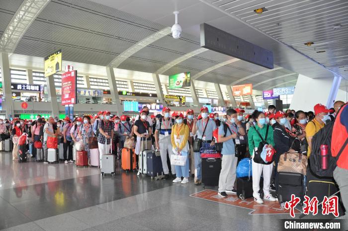 圖為西寧車站工作人員引導(dǎo)乘坐首趟暑期進(jìn)藏旅游專列的旅客進(jìn)站。霍金偉 攝