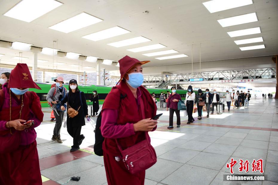 8月11日,旅客有序來到鐵路拉薩站站臺上。據(jù)悉,自本次疫情發(fā)生以來拉薩火車站日均離藏運送旅客數(shù)量約6000人次,貢嘎機場累計出港旅客約2萬人次。 中新社記者 貢嘎來松 攝