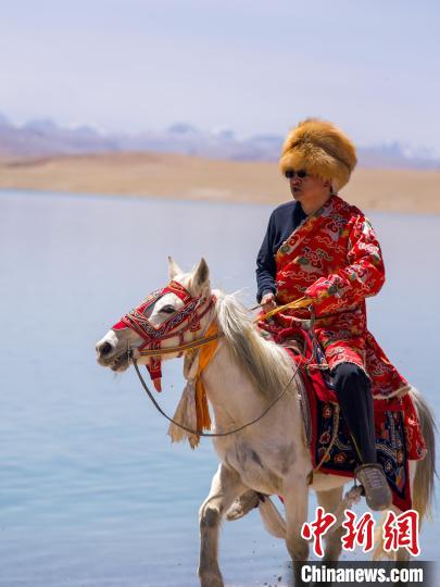 王軍強(qiáng)身著藏北牧民服裝,騎馬在申扎縣雄梅鎮(zhèn)江雄村留念。旦增羅布 供圖