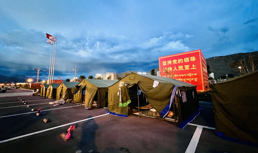 據(jù)介紹,為了盡快解決滯留旅客住宿問題,山南市貢嘎縣有關(guān)部門與機(jī)場協(xié)調(diào)劃出停車場南側(cè)區(qū)域,8月20日晚連夜奮戰(zhàn)搭建帳篷,并安排了四名志愿者駐點(diǎn)為旅客服務(wù)?!?0日晚間,我們搭建了8個帳篷,今天又增加了4個帳篷,目前共有12個帳篷?!编u云說。