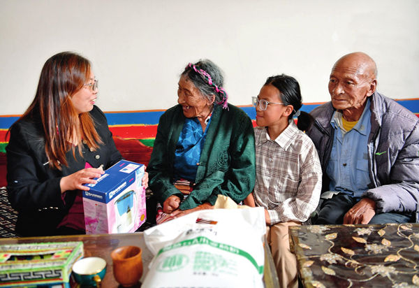 入戶走訪的過程中,王玉秀收獲了許多藏族老百姓的信任和喜愛。援藏結束前,她專門去看望在日喀則市謝通門縣初村結識的次仁和格桑桑珠,還為他們留下生活用品和現(xiàn)金。臨別時,次仁感動地說:“能有這么一位‘親戚’,我們真的很高興?!?/p>