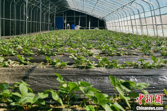 西藏康馬縣高原溫室大棚里的草莓,預(yù)計(jì)10月可采摘。 受訪者供圖